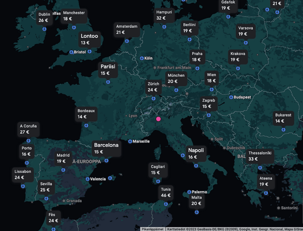 Matkasuunnitelmani lähtee aina ensimmäisenä (jo ennen kohteen valitsemista) avaamalla google lennot ja katsomalla mihin kannattaisi lähteä tai mitä reittiä käyttää. Tähän minulla on tuttu kaava: