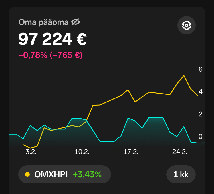 Sijoitukseni -sivulla seuraat varallisuuteni kehitystä ja historiaa. Sharevillessä käyttäjää Inaa seuraamalla näet kaupankäyntini yhden salkkuni sisältä