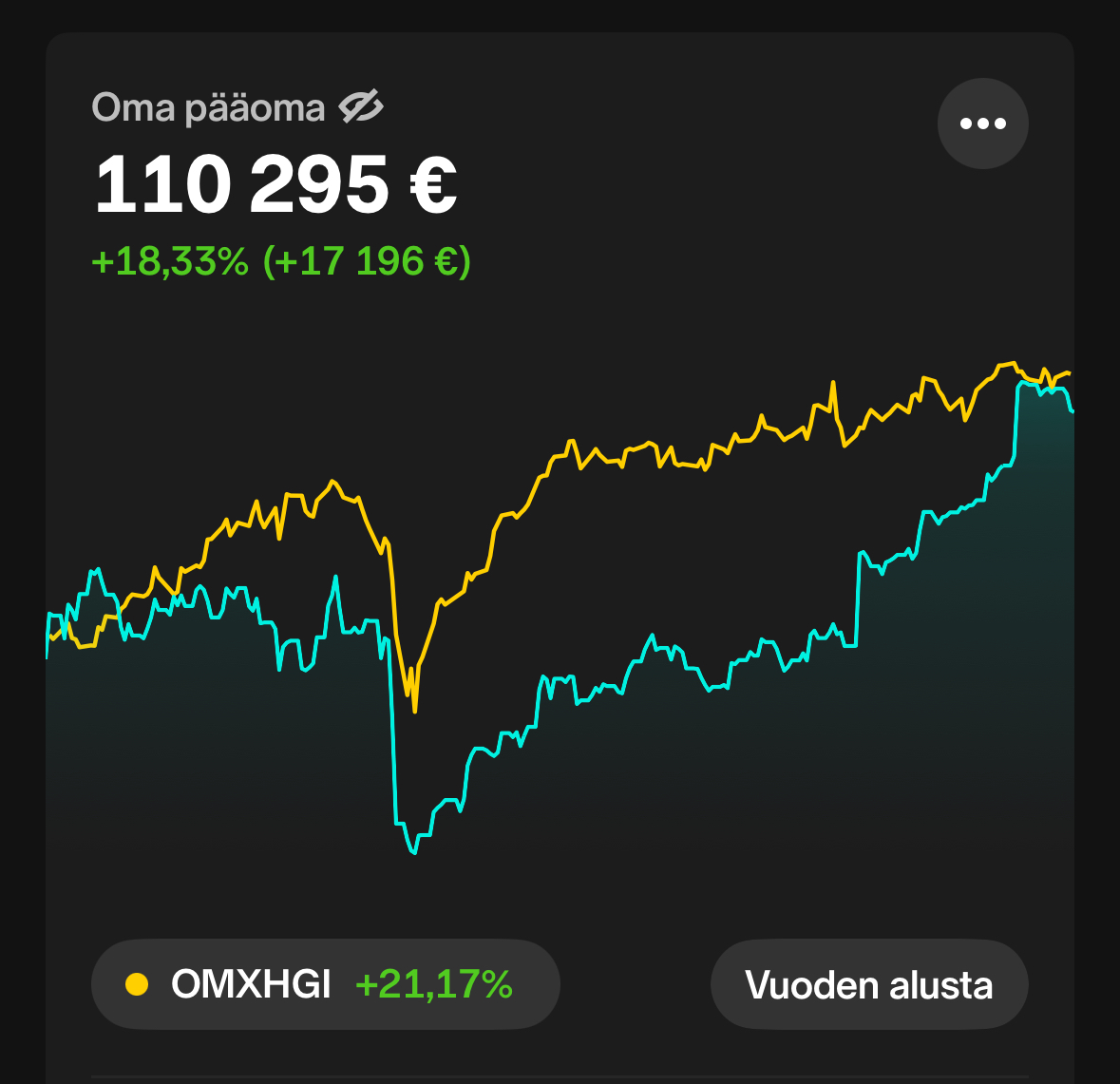 Noin vain puolihuomaamatta laskiessani nettovarallisuuttani päädyin ensimmäistä kertaa kolmosella alkavaan lukuun(!!!). Vielä alle 4v sitten tuo sama luku oli puolet tästä ja 9 vuotta sitten perästä sai ottaa yhden nollan pois. Kannatti aikoinaan vain aloittaa sijoittaminen.